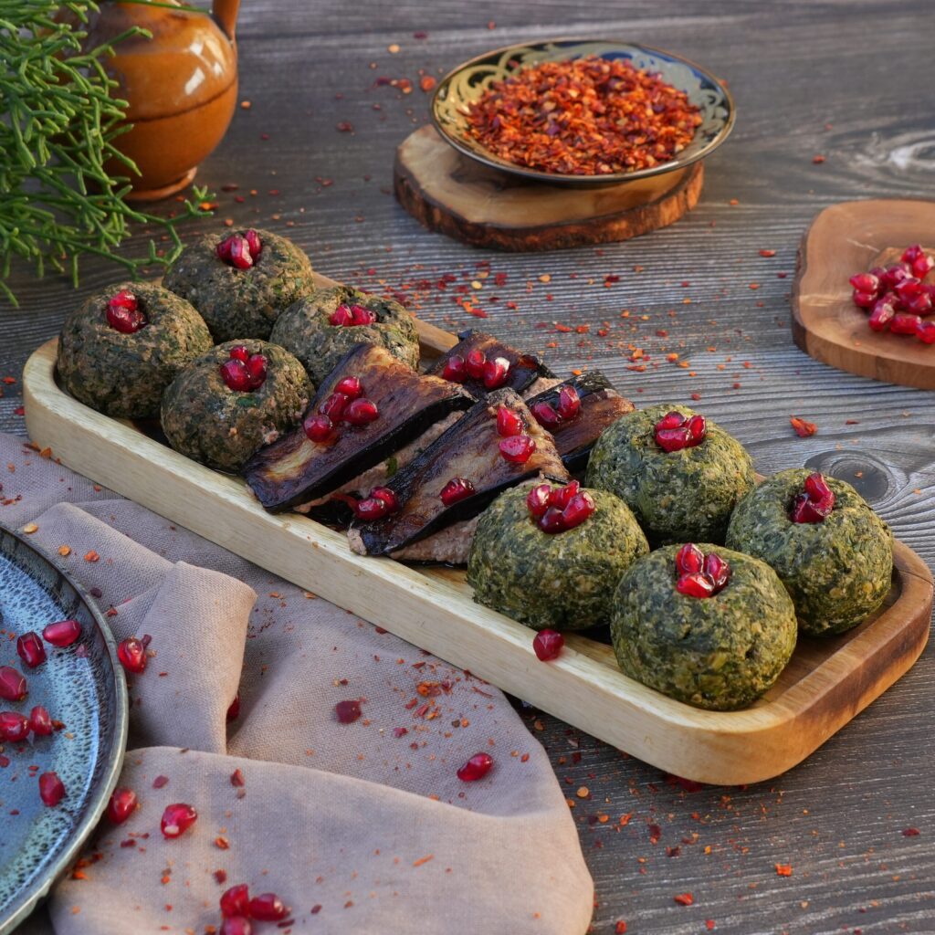 A colorful vegetarian appetizer made of minced vegetables (spinach, beetroot, or cabbage) combined with a rich walnut paste, garlic, and Georgian spices.